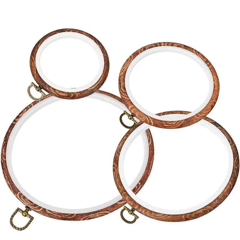 Hot Sale 4 Pieces Embroidery Hoop Cross Stitch Hoops Imitated Wood Embroidery Circle for Art Craft Handy Sew