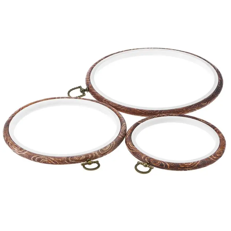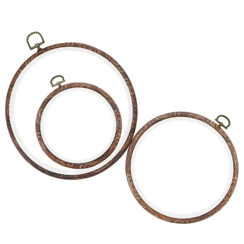 3Pcs Embroidery Hoops Cross Stitch Hoop Ring Imitated Wood Circle Set Display Frame for Art Craft H